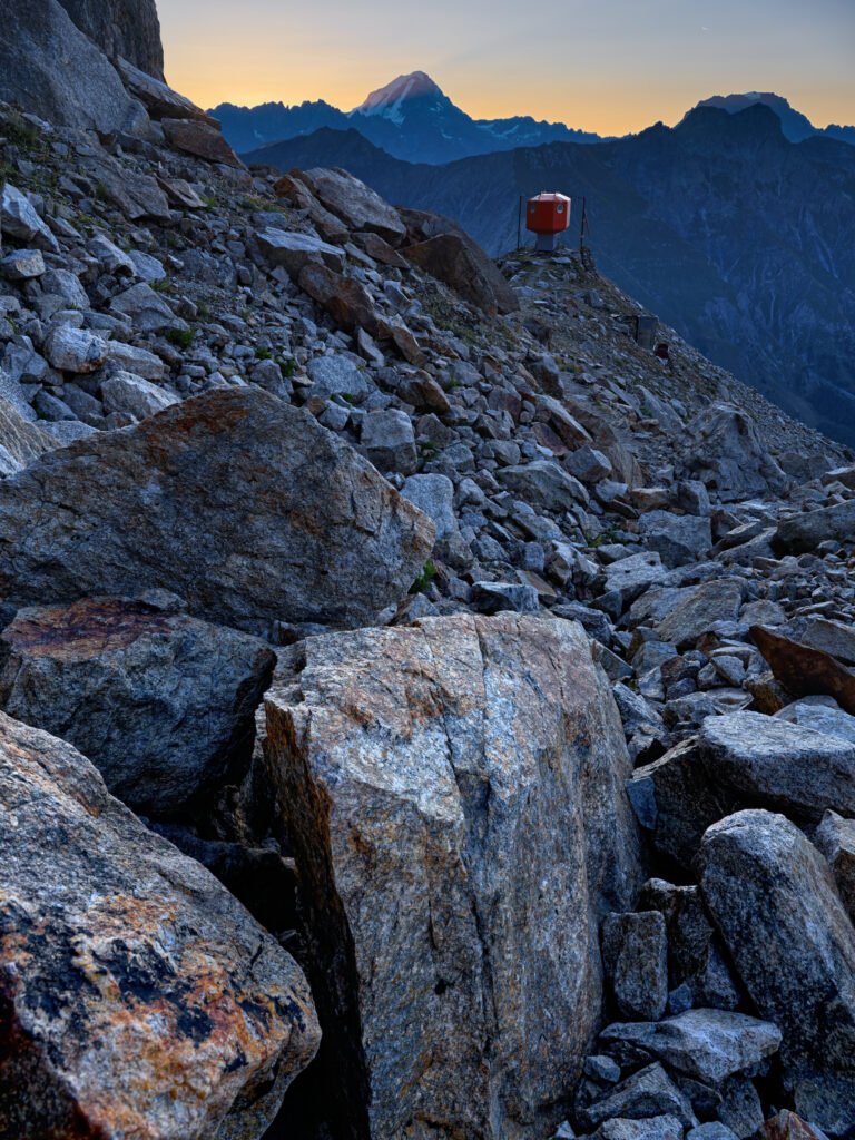 Al primo posto per questo 2025, ormai prossimo alla fine, metto il Bivacco del Dolent: un luogo unico, dove l’ambiente montano dà l’impressione di un altro pianeta, simile a una scena del film Interstellar. Questo bivacco dalla forma particolare si trova sulla morena glaciale ai piedi del Mont Dolent, una cima nel massiccio del Bianco, un luogo in cui ghiaccio e roccia si incontrano. Sporge su una vallata che si perde all’orizzonte, offrendo una vista chiara sulla cuspide del Grand Combin.