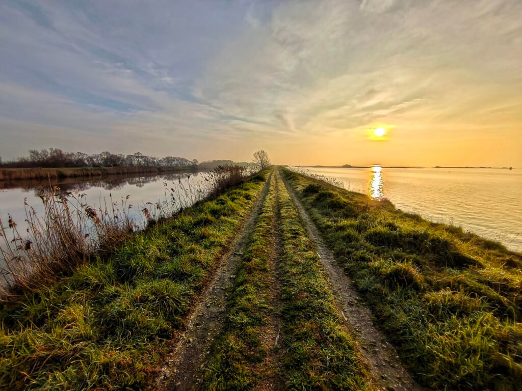 Intorno a me solo animali a caccia di colazione: corvi, gabbiani, nutrie, volpi, aironi, fagiani, cormorani… e in lontananza anche dei fenicotteri. Più tardi ho scoperto l’esistenza di una colonia stanziale.